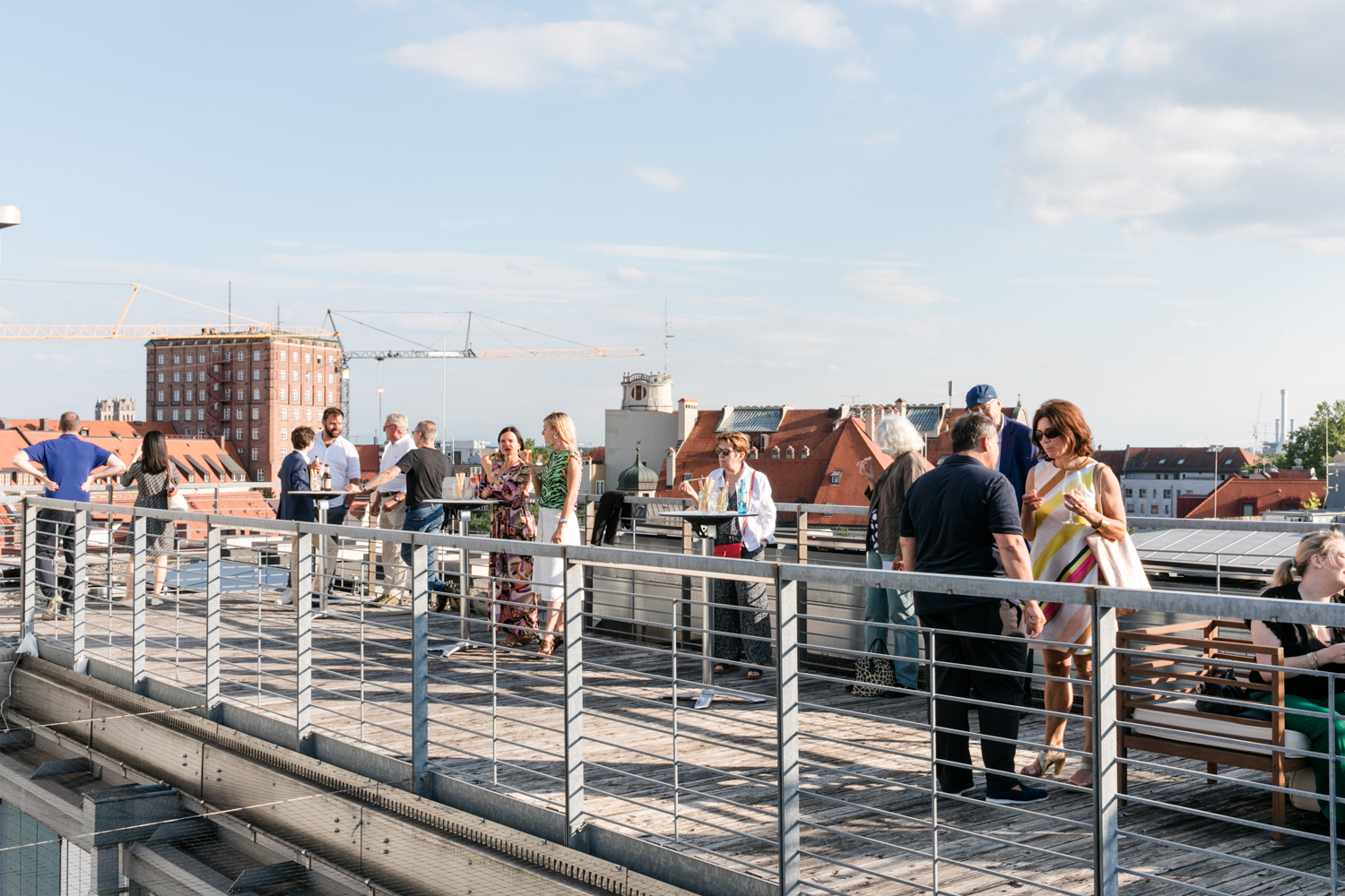 Für die musikalische Unterhaltung sorgte das Saxophon-Quartett Hot Sax Club. Die Getränke des Abends wurden durch Unterstützer wie die Wieninger Brauerei, das Weingut Terra Nera und Libella zur Verfügung gestellt. Bei sommerlichen Temperaturen lud die Dachterrasse des Bayerischen Bauindustrieverbands zum Netzwerken und zu Gesprächen über den Dächern Münchens mit Blick auf die Frauenkirche ein.